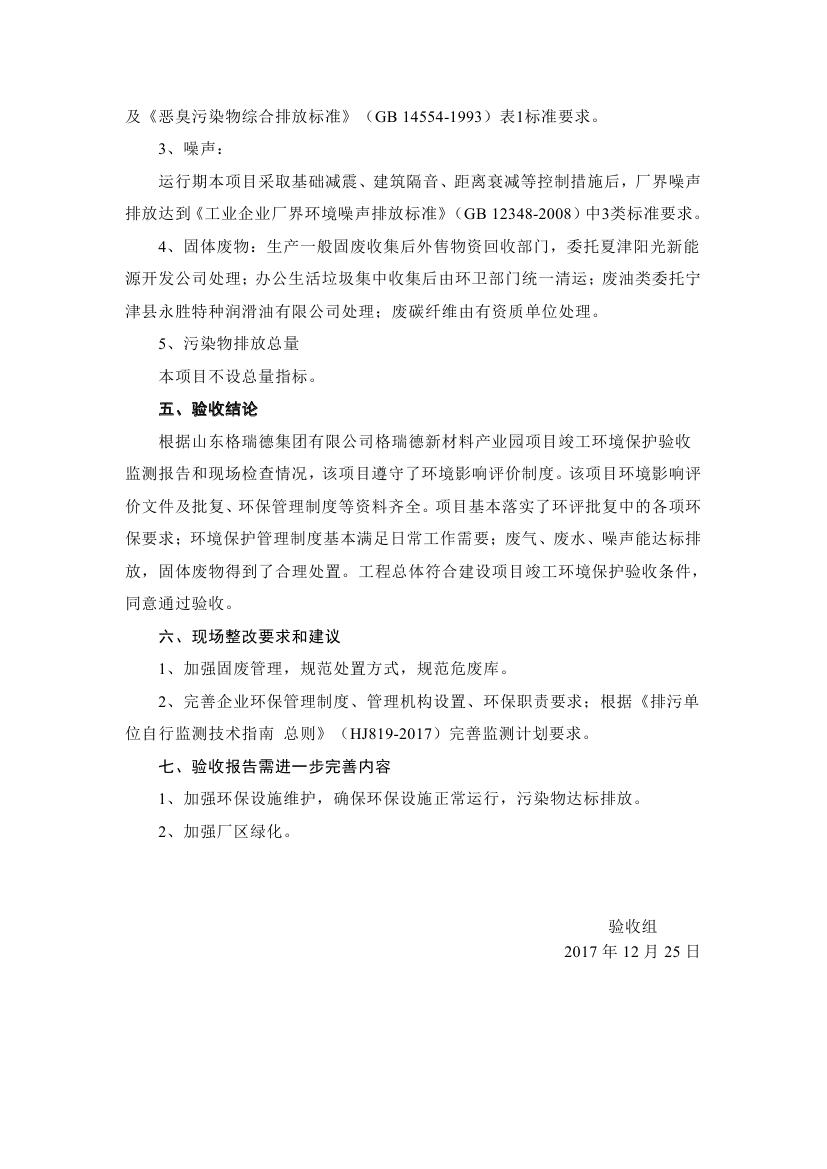 格瑞德新材料产业园建设项目竣工环境保护验收监测报告公示