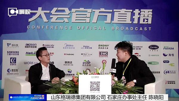 展会期间,此次制冷展还专门举办了“煤改清洁能源专题论坛”,作为本次展会的明星单位,格瑞德集团石家庄办主任陈晓阳代表格瑞德集团参加了此次论坛,并接受了大会相关媒体的现场采访,在论坛现场,陈主任详细阐述了格瑞德集团针对煤改清洁能源在技术研发、产品改进等方面做出的努力,并现场介绍了格瑞德空气能和太阳能相结合的双源热泵产品解决方案,展现了格瑞德集团在清洁能源和环保方面的强大研发能力。